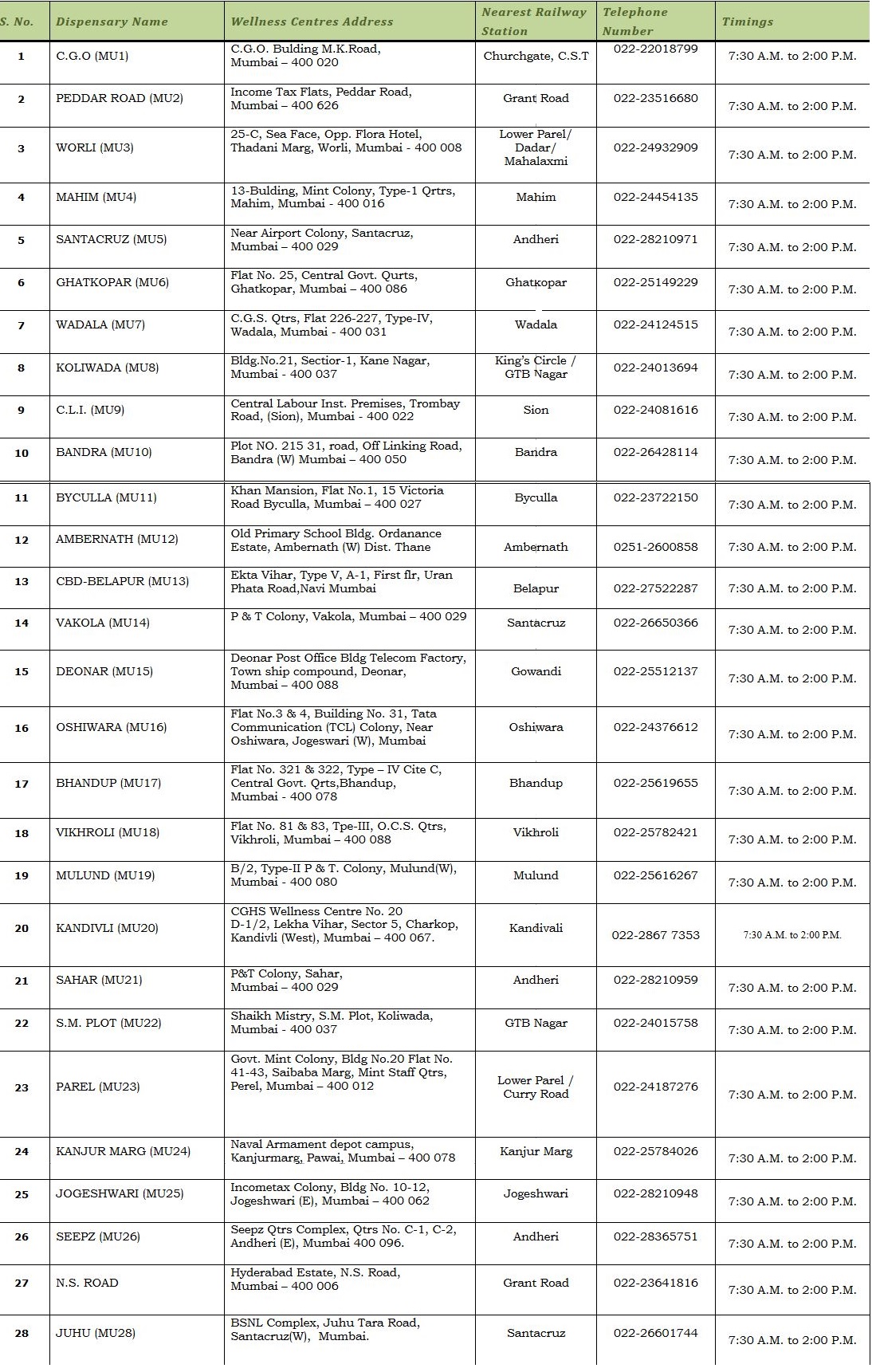 Here is a list of all wellness centers, Polyclinics, Homeopathic and Ayurvedic Dispensaries in Mumbai:
