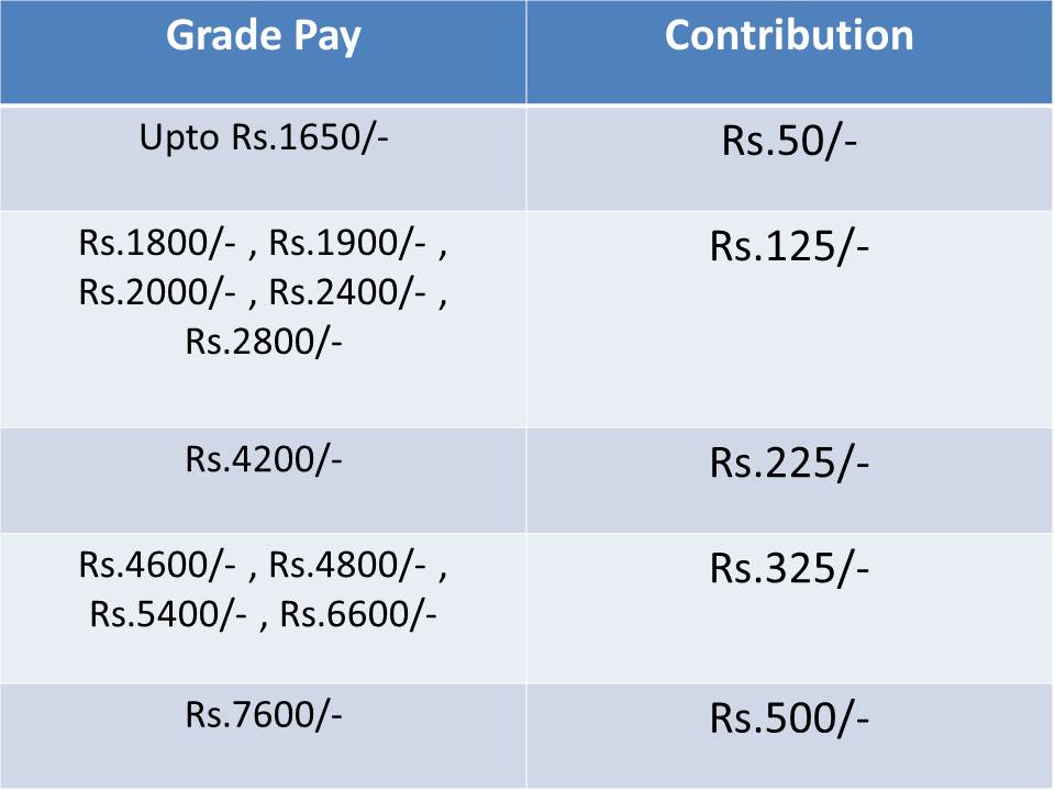 The contribution by pensioners is calculated on the basis of their Grade pay when they were in service.
